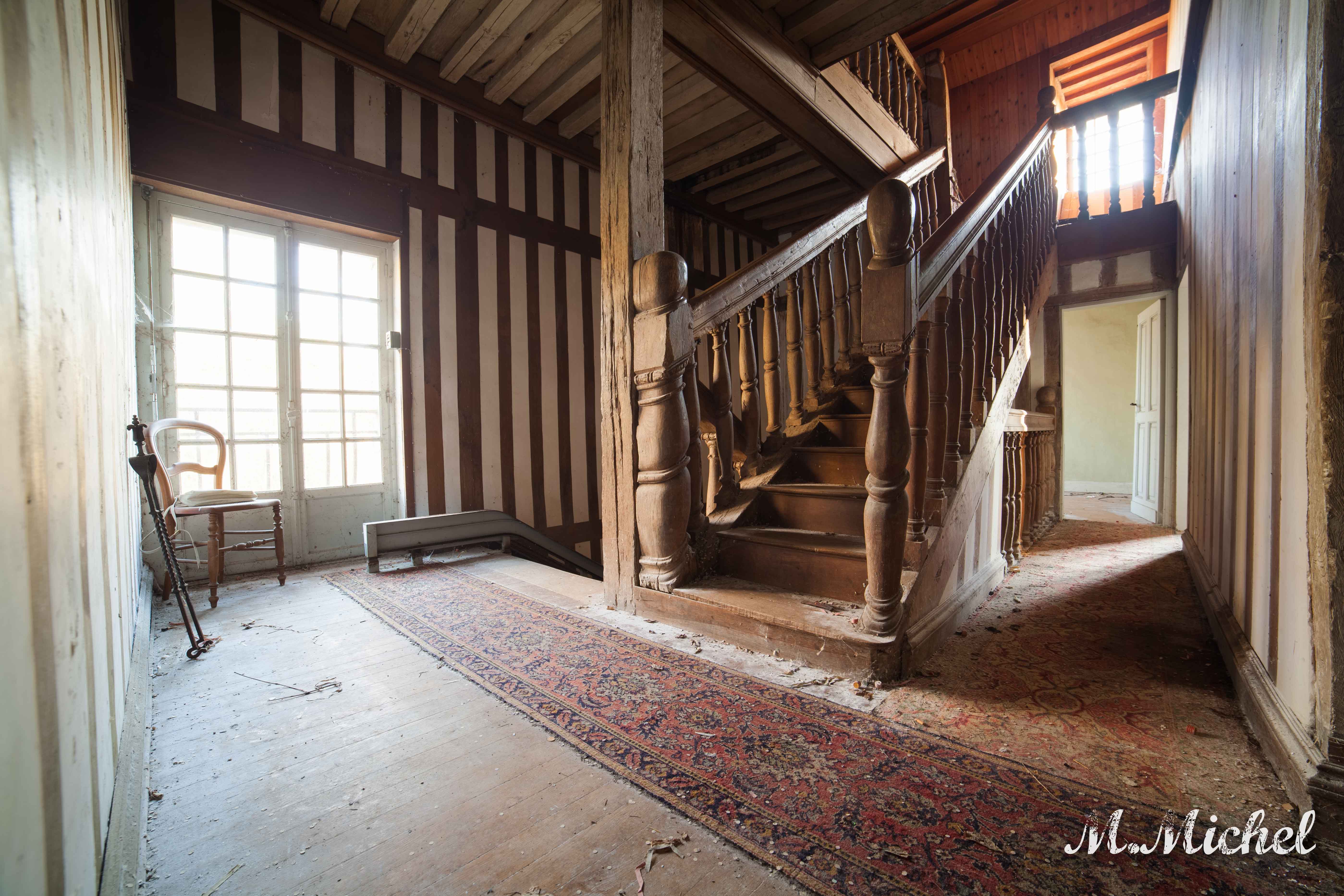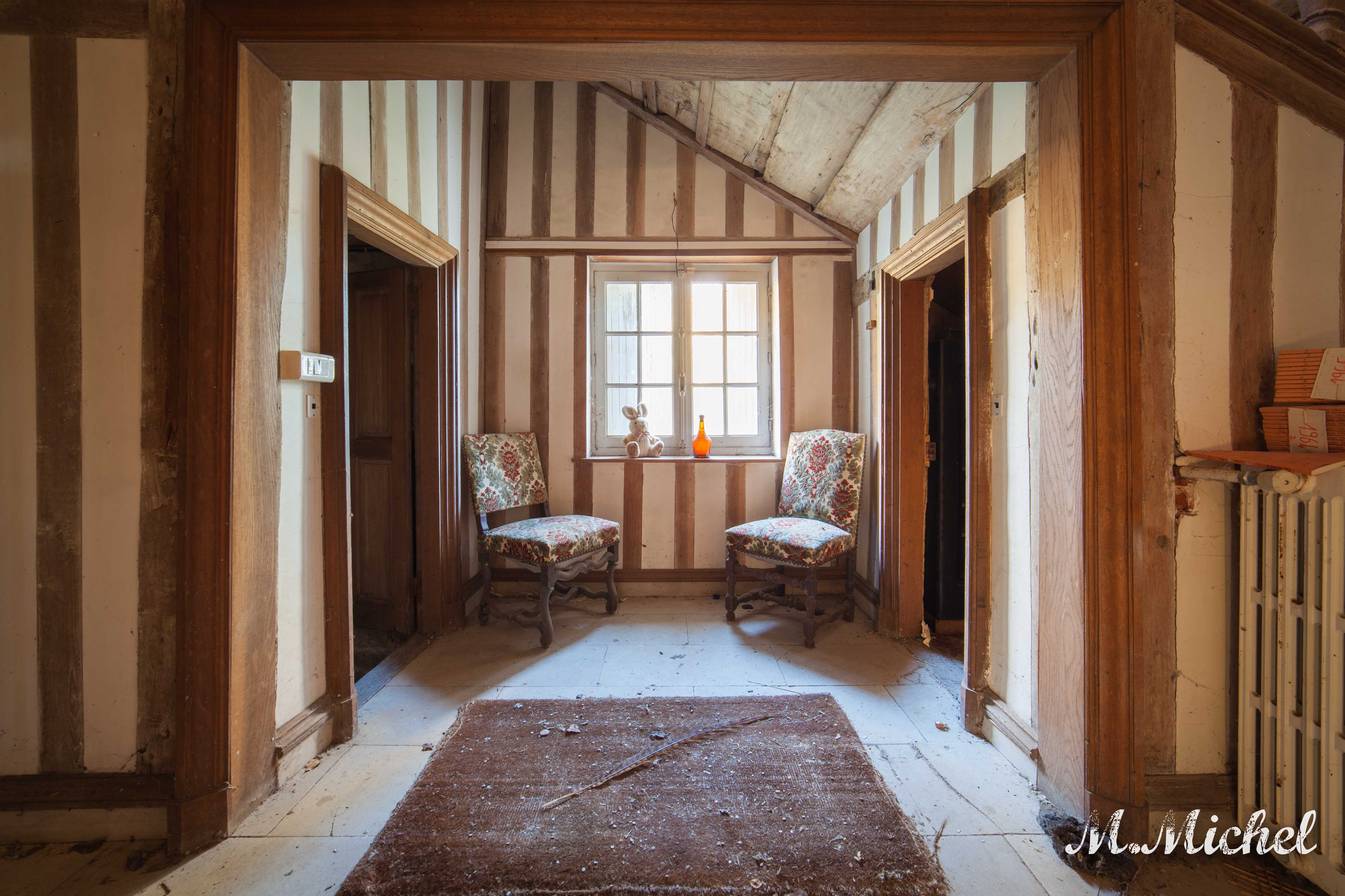 Ce manoir a un style bien a lui et pour autant il est resté depuis déjà quelques années dans un oubli total. Je n’ai pas beaucoup d’information sur ce lieu hormis que le temps l’a bien amoché et qu’il a due être quitté suite a une succession car il est encore un peu meublé.